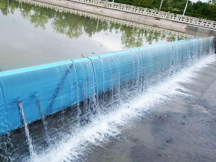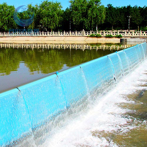 橡膠壩使用壽命短(橡膠壩采用的是再生橡膠原料,壩袋易老化,容易被上游漂浮物或尖銳物損壞,從而降低使用壽命);運行管理難度大(洪水過后一旦壩面淤積較厚,要求人工清理,否則壩袋不能正常升起蓄水,增加了后期的人工費用)。充水式橡膠壩冬季冰凍容易損壞壩袋,而充氣式橡膠壩不能調節壩高。